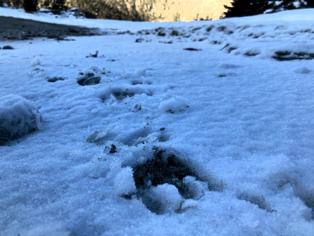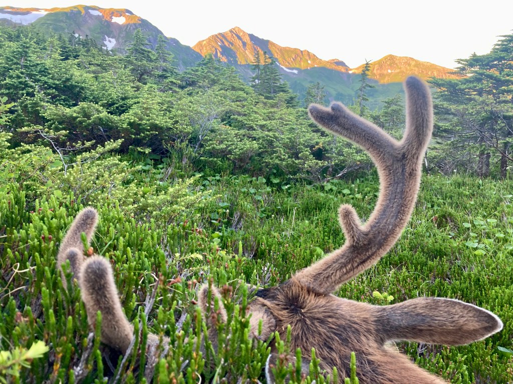 Alarm at 4 am. I don’t bother packing the tent and hustle up the mountain with just the essentials: trail mix, rifle, extra shells, hunting knife, plastic bags, and Wild Berry Skittles. I pop out of the woods and into a mix of muskeg and yellow cedar, greeted by the rasping call of a doe.
