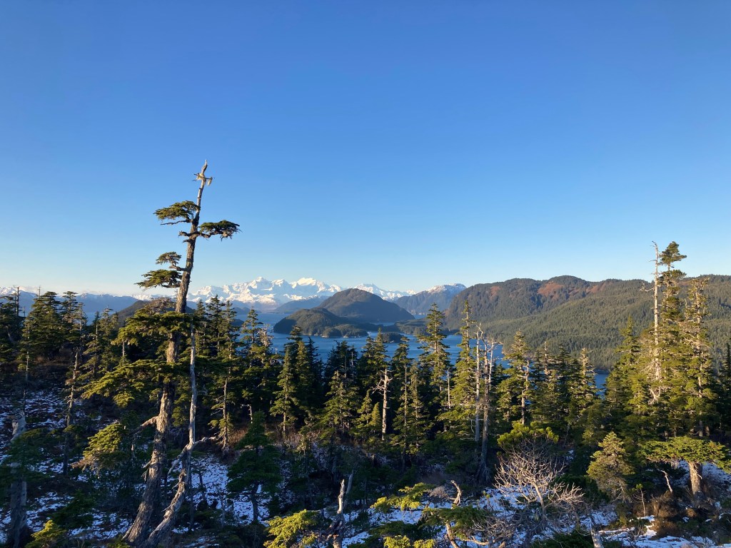I pause at the summit. The Fairweather Mountains explode from the other side of Icy Strait. Even from this distance, the 14,000-foot sentinel’s tower over my quaint little hill, blinding white peaks stretching north. Again, I feel small, but not in the diminished, intimidated manner of the day prior.  The wildness of my home reverberates in my chest, and I barely mind when I realize the deer have disappeared around a steep and wooded point.