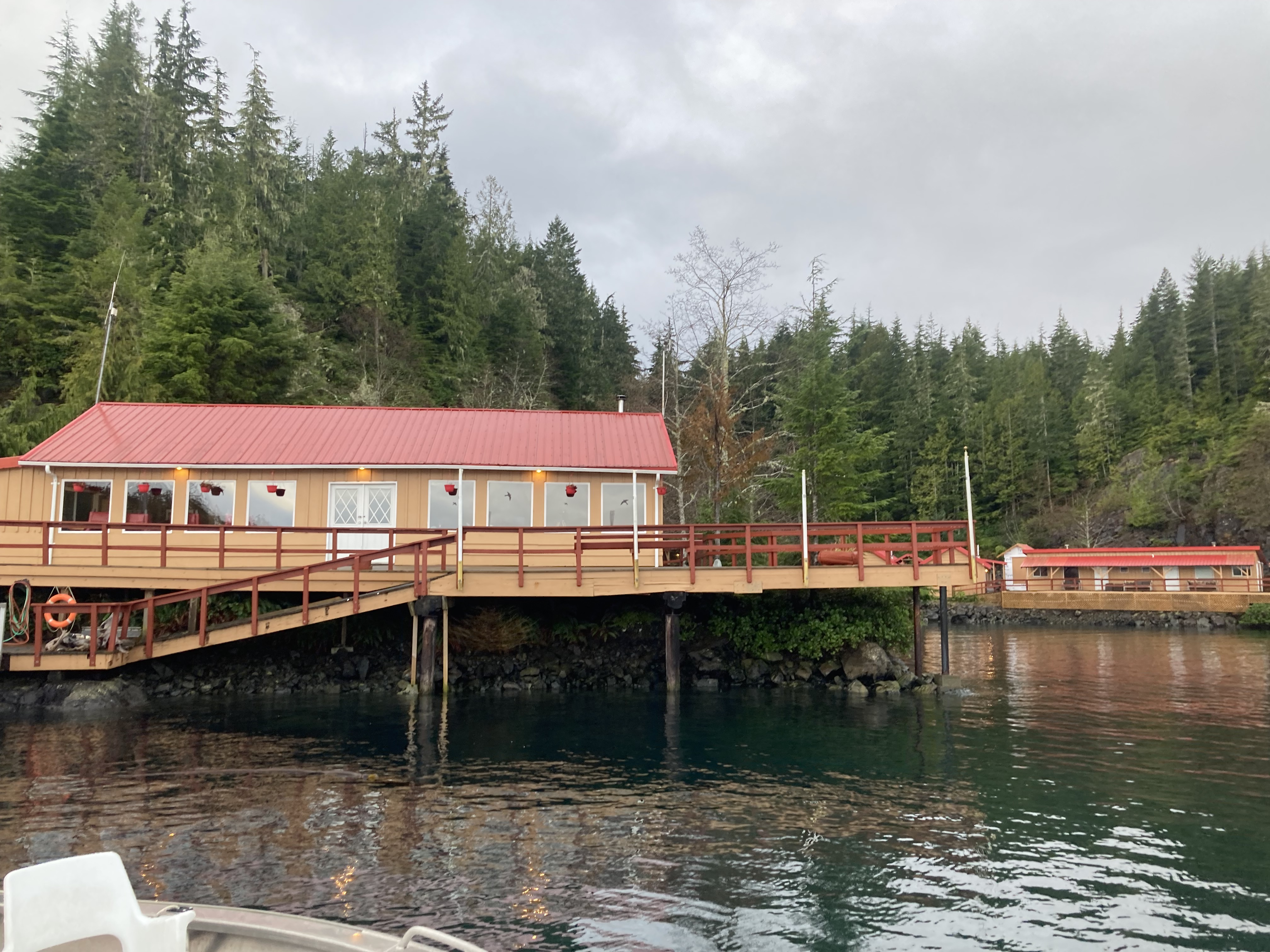 Every town run from Orca Lab to Alert Bay took me past Double Bay, its long boardwalk, floating dock, and cherry red rooftops. I shoulder my pack and follow the other caretaker, Laurene, up the dock. She directs me to a cabin on the right side of the horseshoe-shaped boardwalk, perched on the rocks with a view of Blackfish Sound and the first layer of the Broughton Archipelago’s islands.