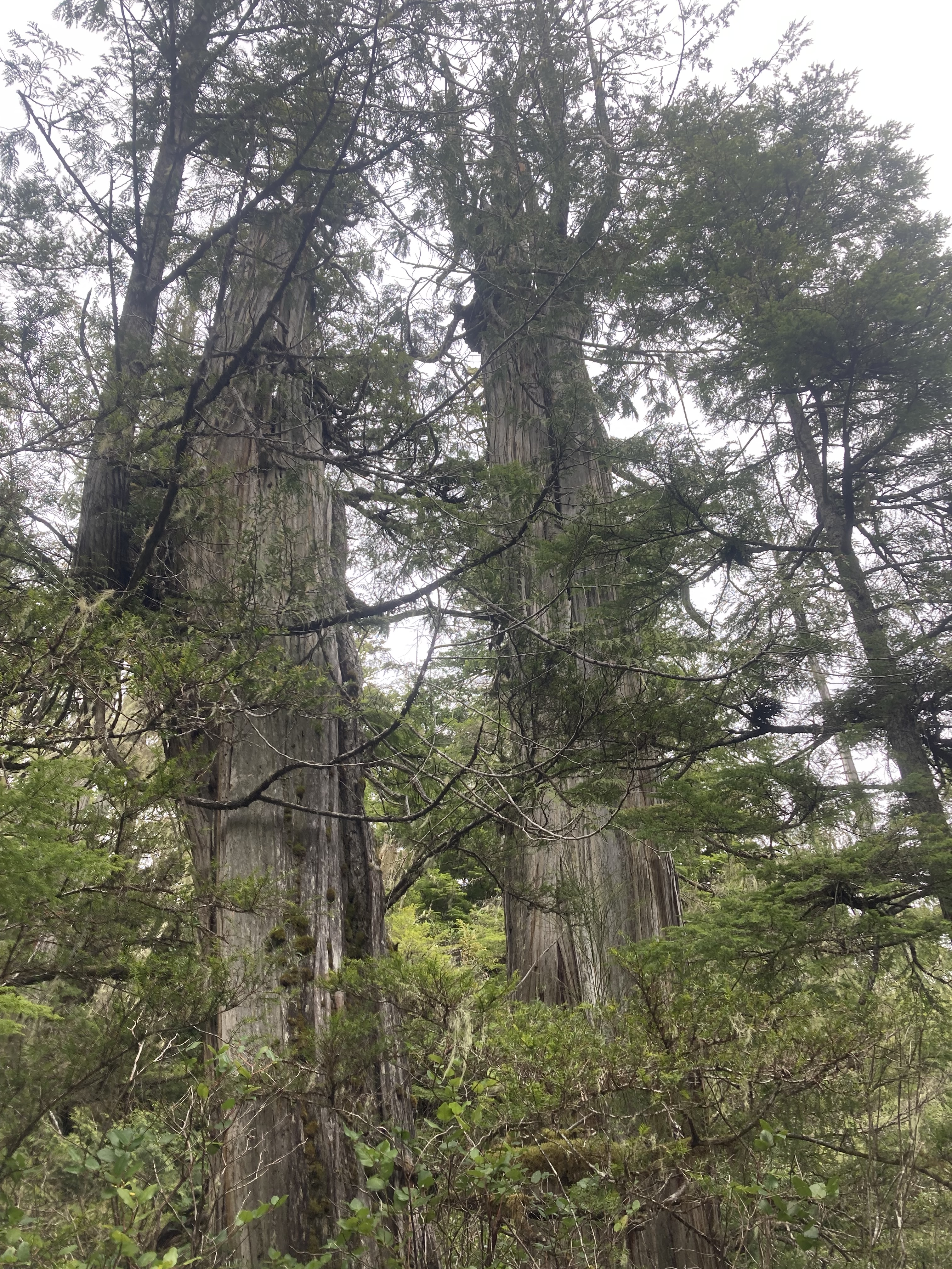 I return the journal to a house built by trees to protect trees and retreat down a forgotten logging road that will never continue, forever stymied by a fence woven with sinewy salal and shaded by cedars growing in dignified defiance.