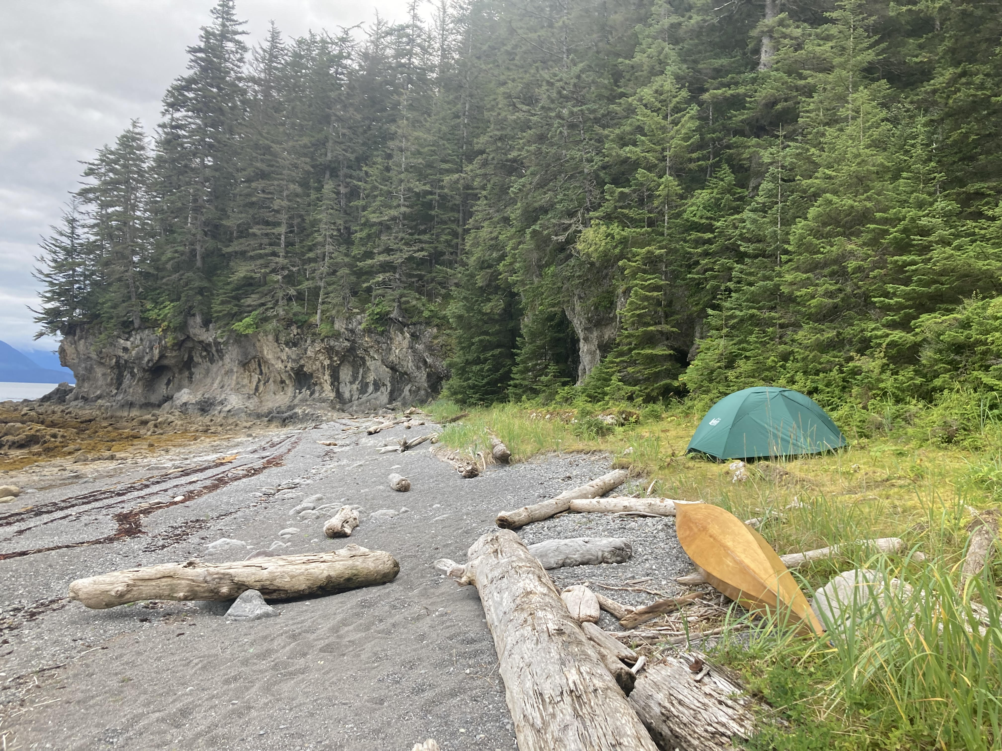 I am hovering above the water, retracing a paddle route down Chatham Strait. Every rock and point is vivid. Waves ricochet off cliffs. Humpbacks rise and fall in long summer light. Bear tracks in the sand. Loons greet the rising sun.